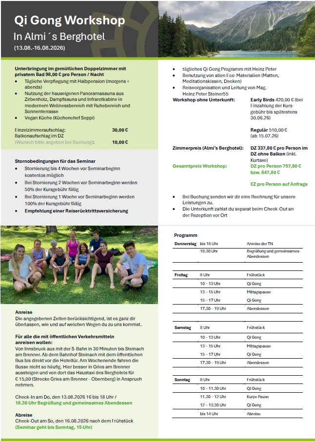 Als Gesundungsinitiator berate ich Sie gerne, um für Sie das passende Qi Gong Training auszuwählen.
