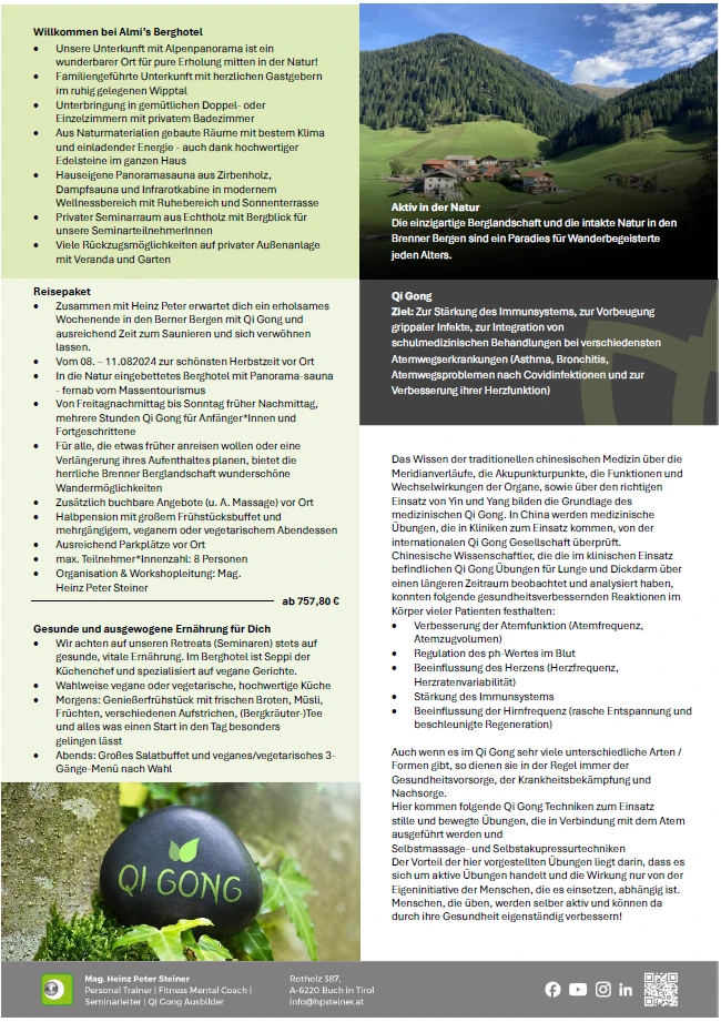Als Gesundungsinitiator berate ich Sie gerne, um für Sie das passende Qi Gong Training auszuwählen.